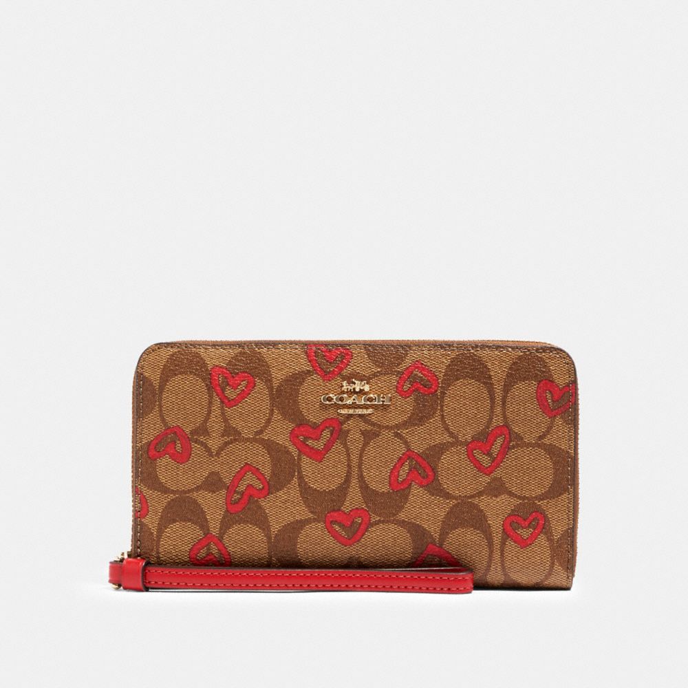 COACH FACTORY OUTLET PRICE CHART - 91578 - LARGE PHONE WALLET IN SIGNATURE CANVAS WITH CRAYON HEARTS PRINT - IM/KHAKI RED MULTI