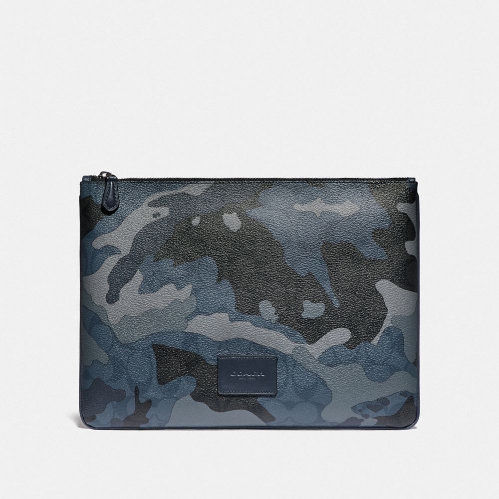 LARGE POUCH IN SIGNATURE CANVAS WITH CAMO PRINT (COACH F76950)