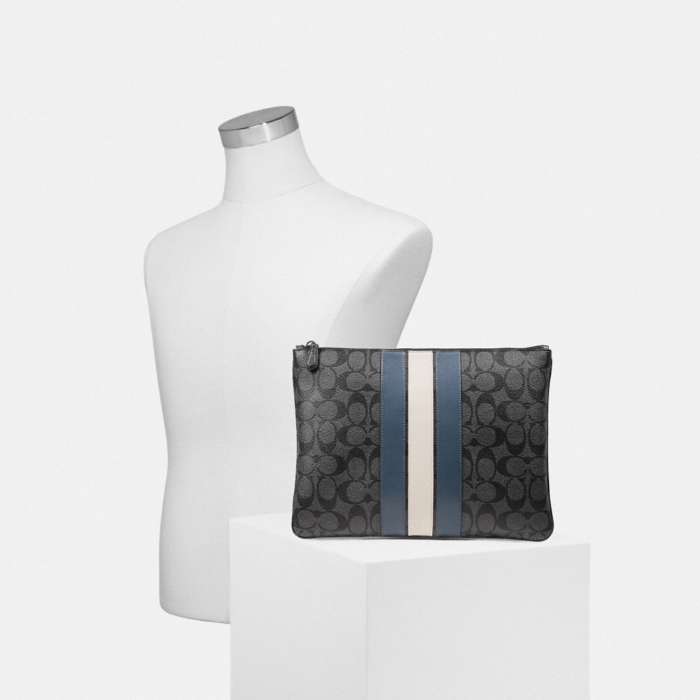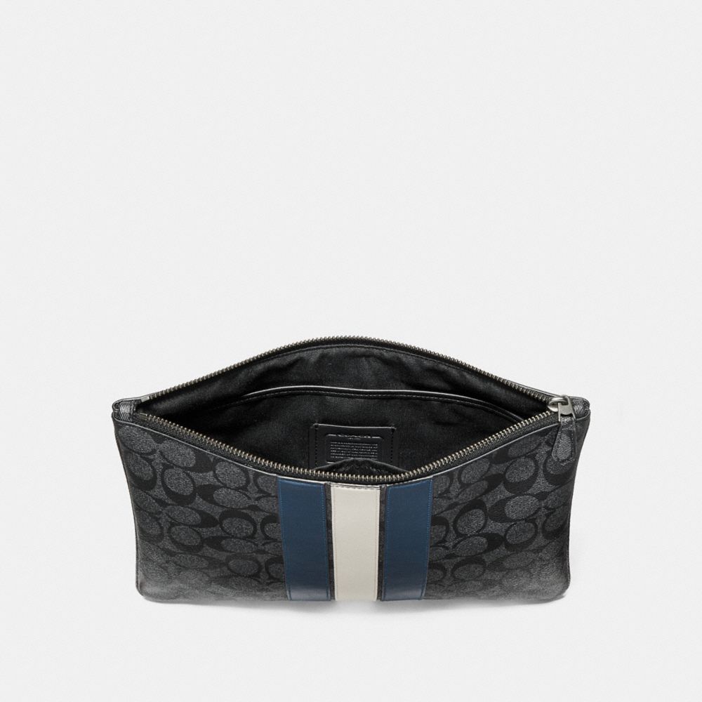 LARGE POUCH IN SIGNATURE CANVAS WITH VARSITY STRIPE (COACH F26071)
