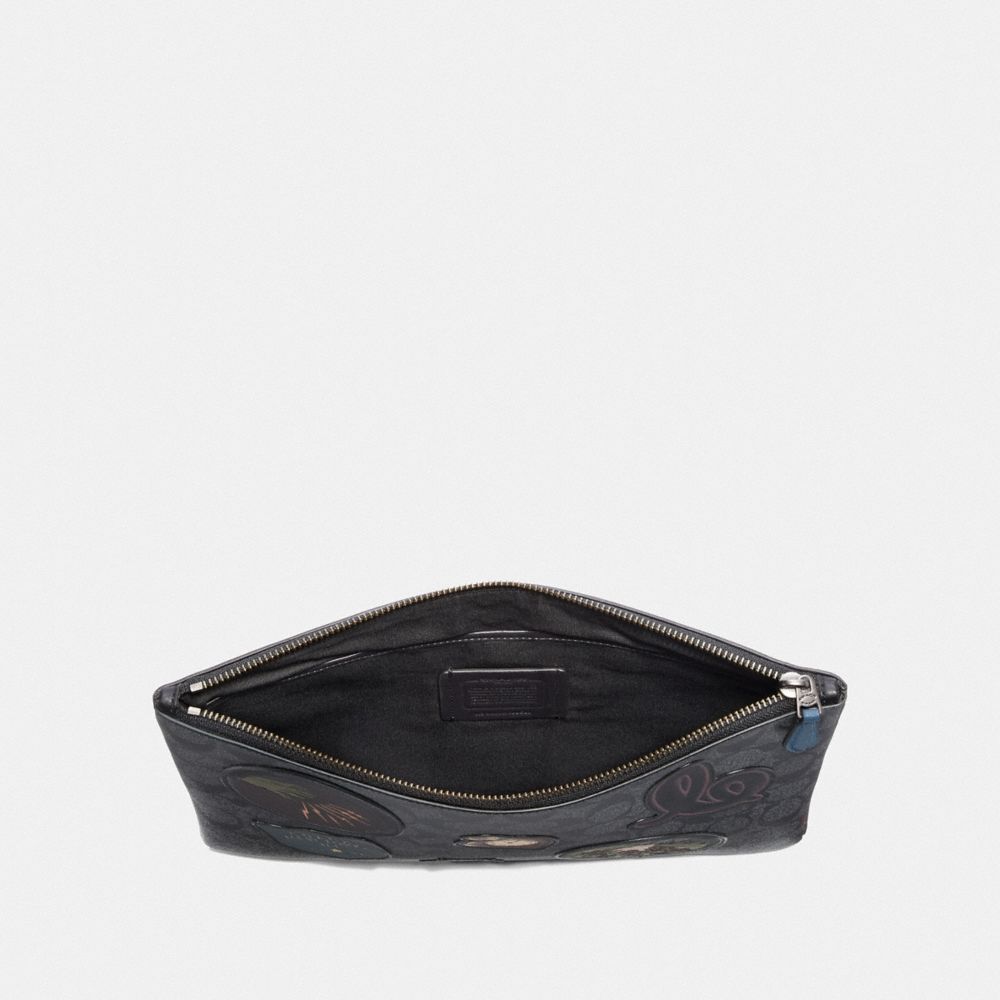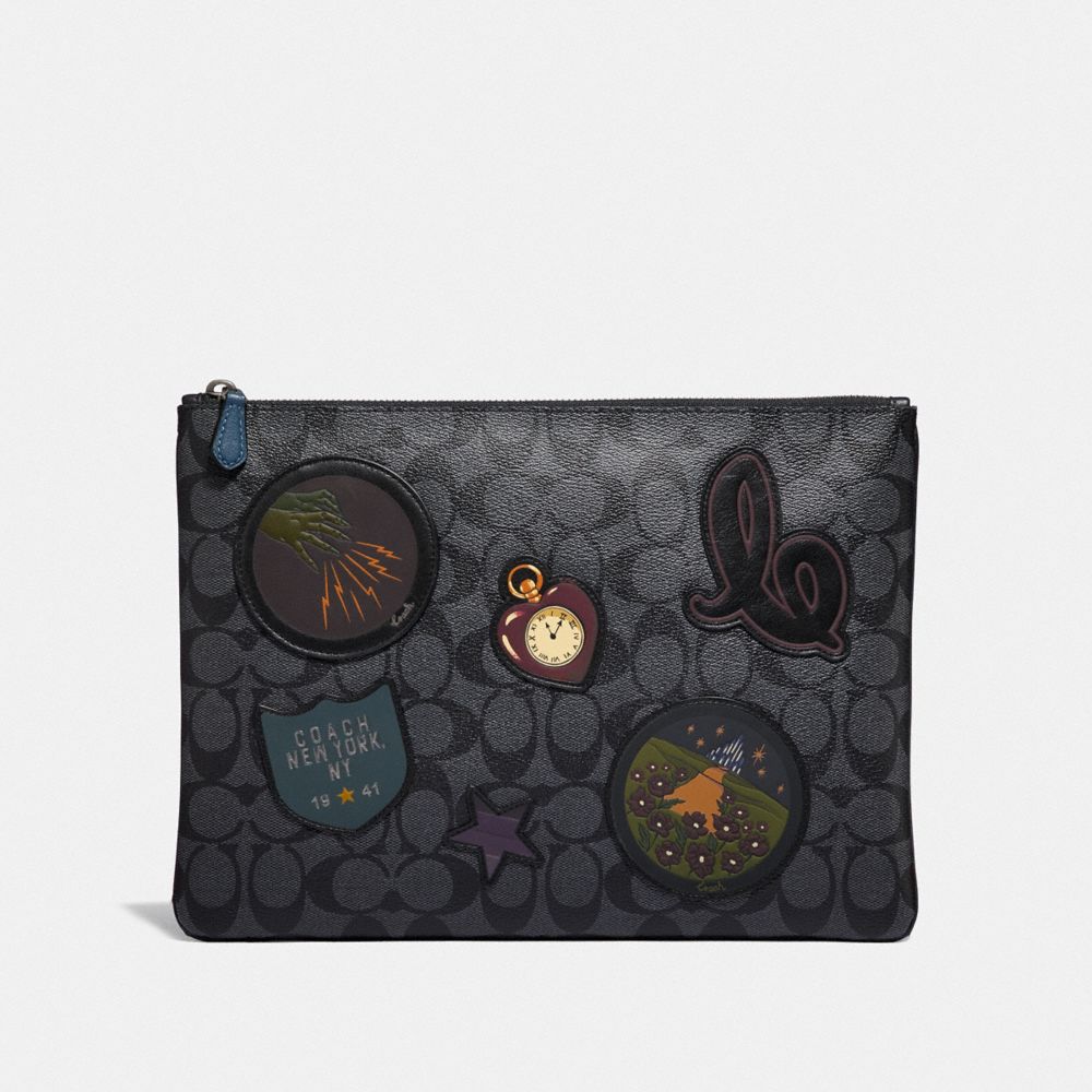 COACH FACTORY OUTLET PRICE CHART - F39702 - LARGE POUCH IN SIGNATURE CANVAS WITH WIZARD OF OZ PATCHES - CHARCOAL MULTI/BLACK ANTIQUE NICKEL