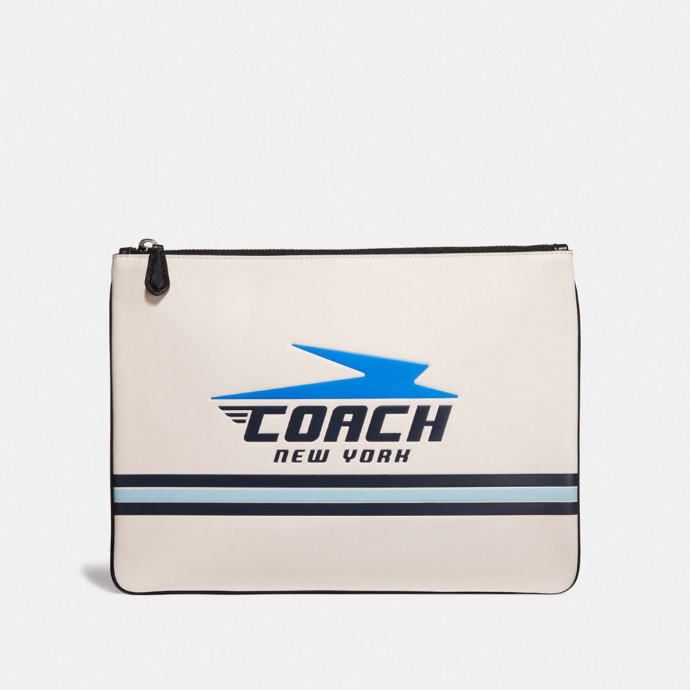 COACH FACTORY OUTLET PRICE CHART - F73076 - LARGE POUCH WITH VINTAGE COACH MOTIF - CHALK