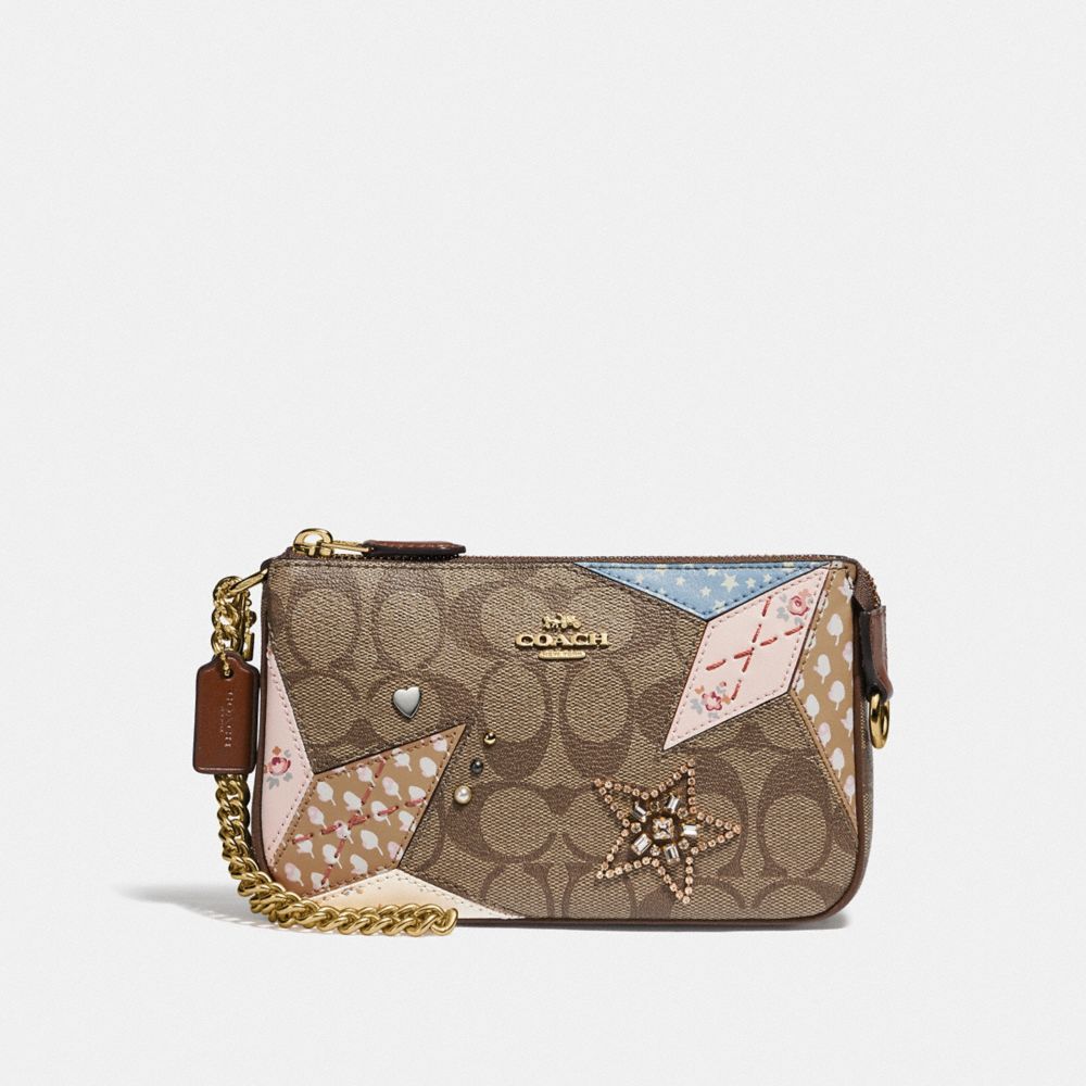 LARGE WRISTLET 19 IN SIGNATURE CANVAS WITH STAR PATCHWORK (COACH F57268)