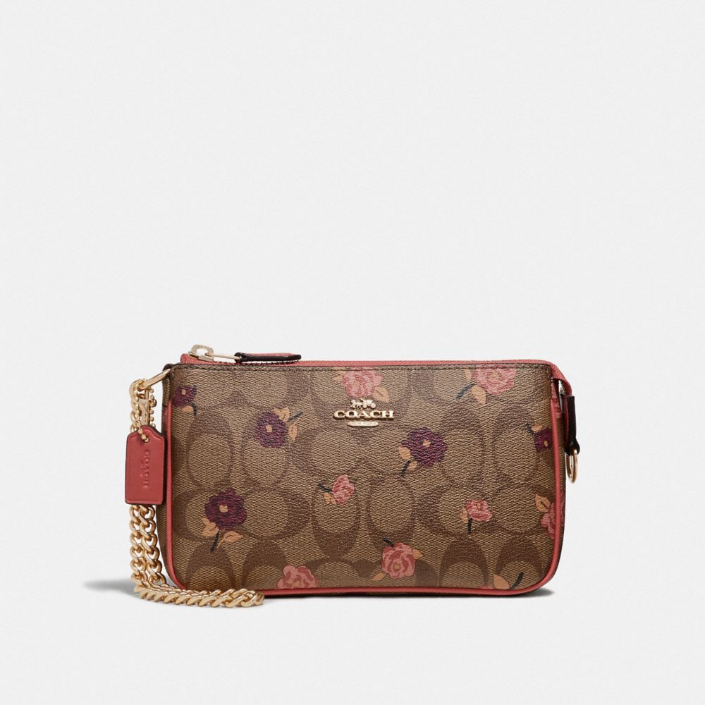 COACH FACTORY OUTLET PRICE CHART - F67532 - LARGE WRISTLET 19 IN SIGNATURE CANVAS WITH TOSSED PEONY PRINT - KHAKI/PINK MULTI/IMITATION GOLD