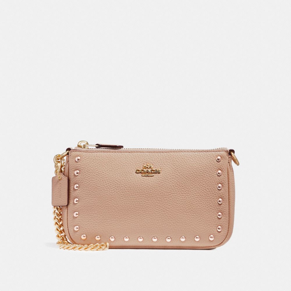 COACH FACTORY OUTLET PRICE CHART - F22813 - LARGE WRISTLET 19 WITH LACQUER RIVETS - IMITATION GOLD/NUDE PINK