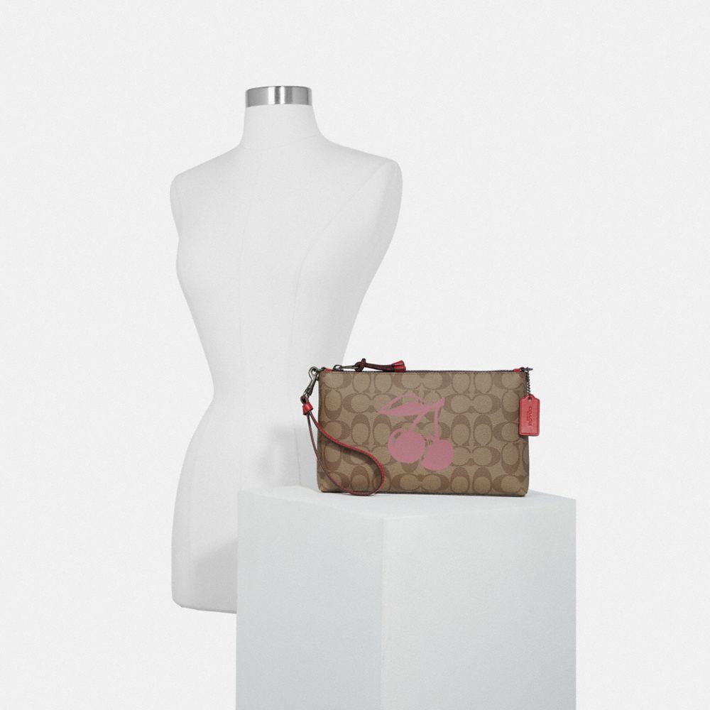 LARGE WRISTLET 25 IN SIGNATURE CANVAS WITH CHERRY MOTIF (COACH F78304)