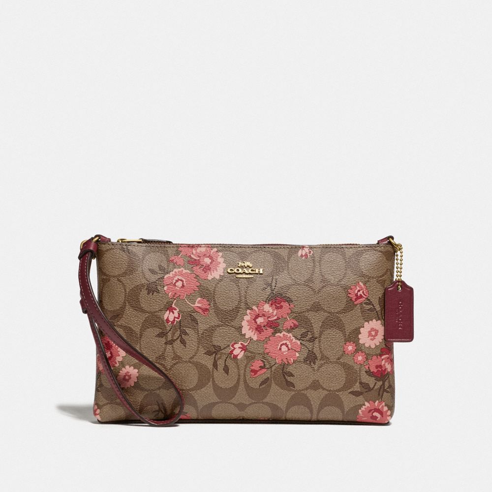 COACH FACTORY OUTLET PRICE CHART - F78846 - LARGE WRISTLET 25 IN SIGNATURE CANVAS WITH PRAIRIE DAISY CLUSTER PRINT - KHAKI CORAL MULTI/IMITATION GOLD
