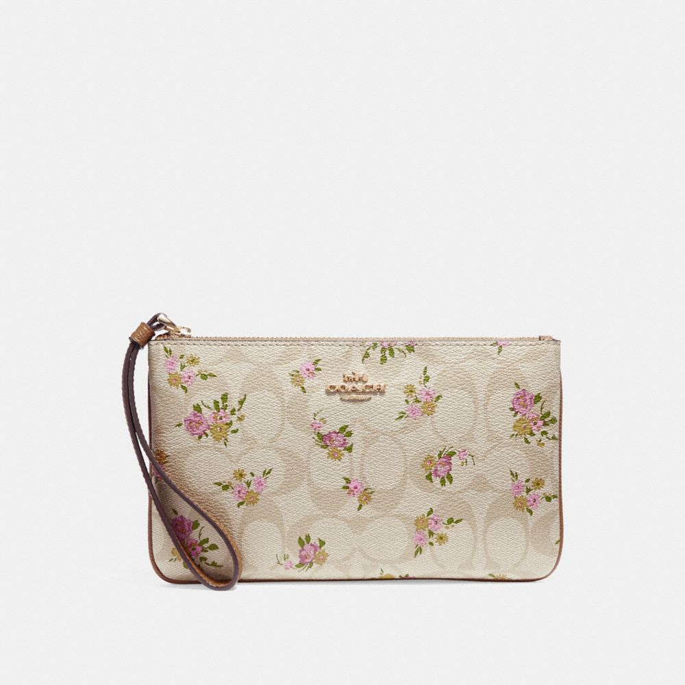 COACH FACTORY OUTLET PRICE CHART - F31784 - LARGE WRISTLET IN SIGNATURE CANVAS WITH DAISY BUNDLE PRINT - LIGHT KHAKI/MULTI/IMITATION GOLD