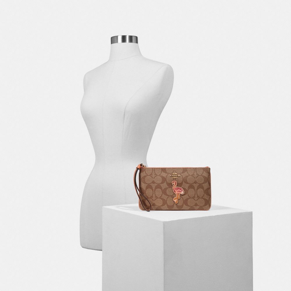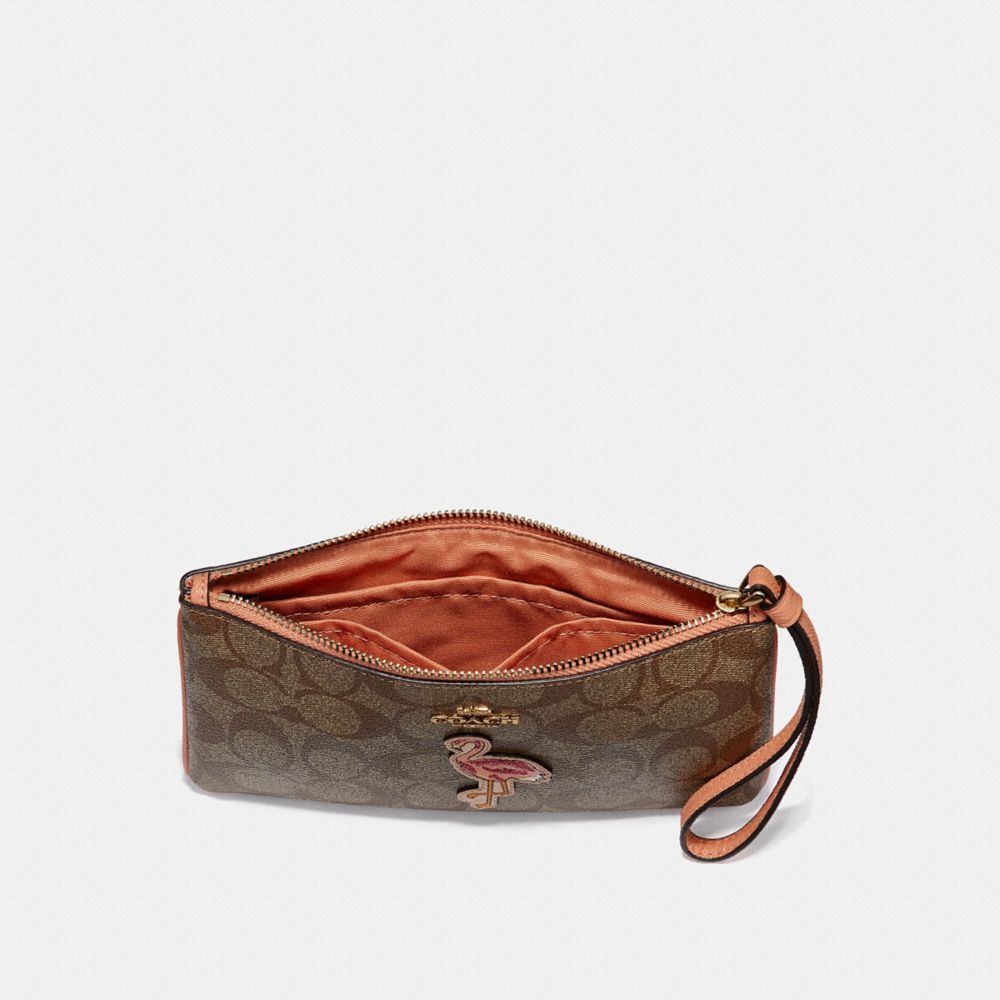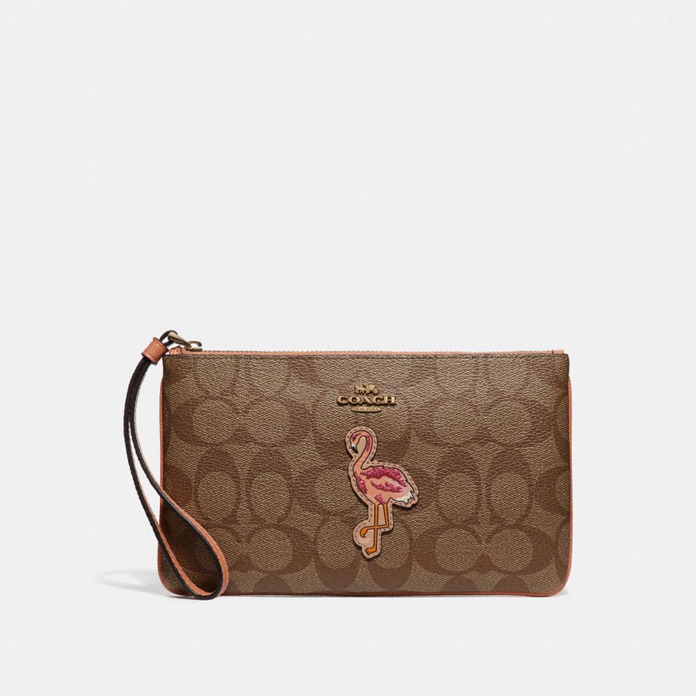 COACH FACTORY OUTLET PRICE CHART - F31124 - LARGE WRISTLET IN SIGNATURE CANVAS WITH FLAMINGO MOTIF - KHAKI/MULTI/IMITATION GOLD