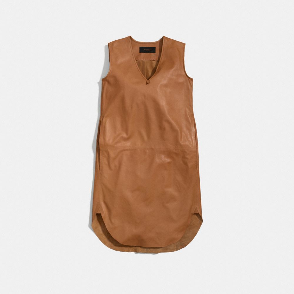 COACH FACTORY OUTLET PRICE CHART - F84808 - LEATHER SLOUCHY SUMMER V-NECK DRESS - CAMEL