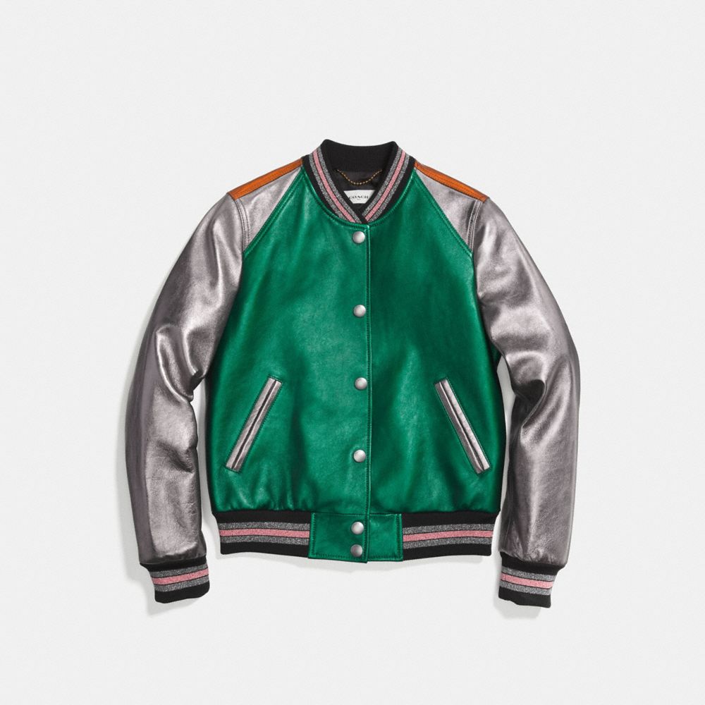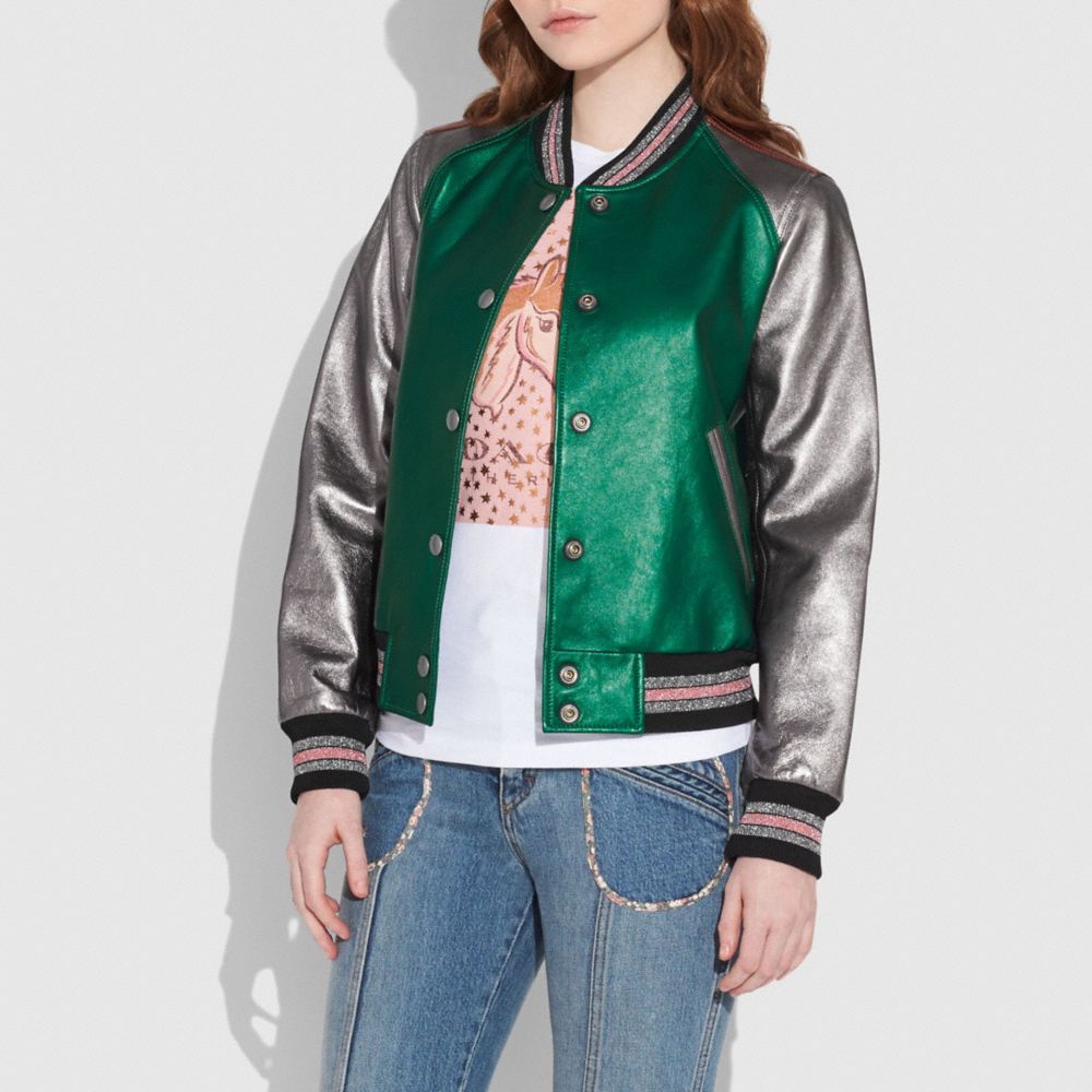 COACH FACTORY OUTLET PRICE CHART - 30993 - LEATHER VARSITY JACKET - METALLIC GREEN
