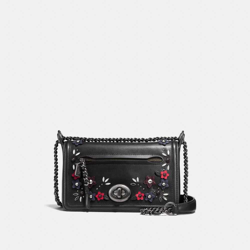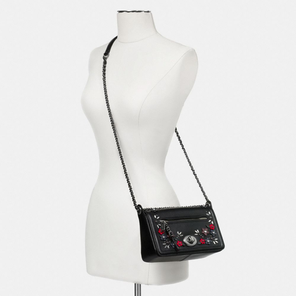 COACH FACTORY OUTLET PRICE CHART - F59451 - LEX SMALL FLAP CROSSBODY IN NATURAL REFINED LEATHER WITH FLORAL APPLIQUE - ANTIQUE NICKEL/BLACK MULTI