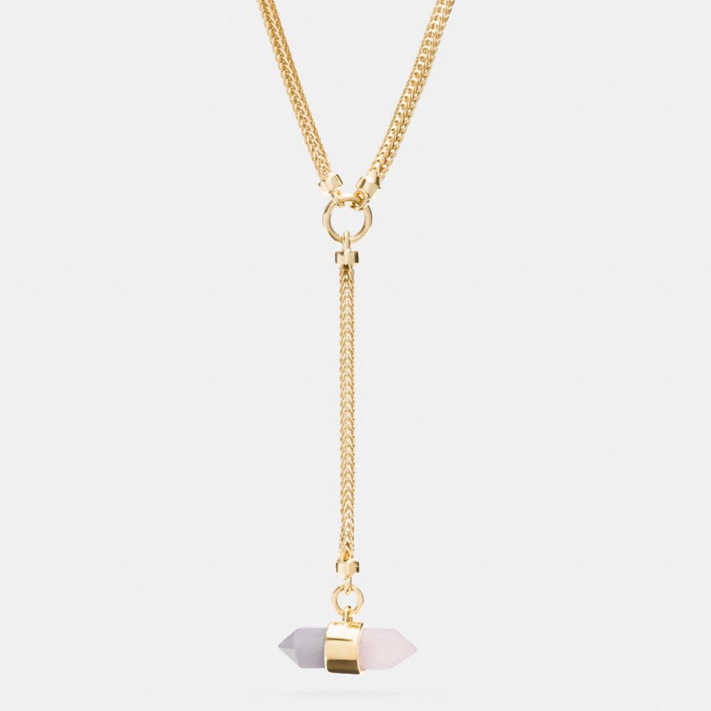 COACH FACTORY OUTLET PRICE CHART - F90680 - LONG TWO TONE AMULET LARIAT NECKLACE - GOLD/STONE/ BLUSH