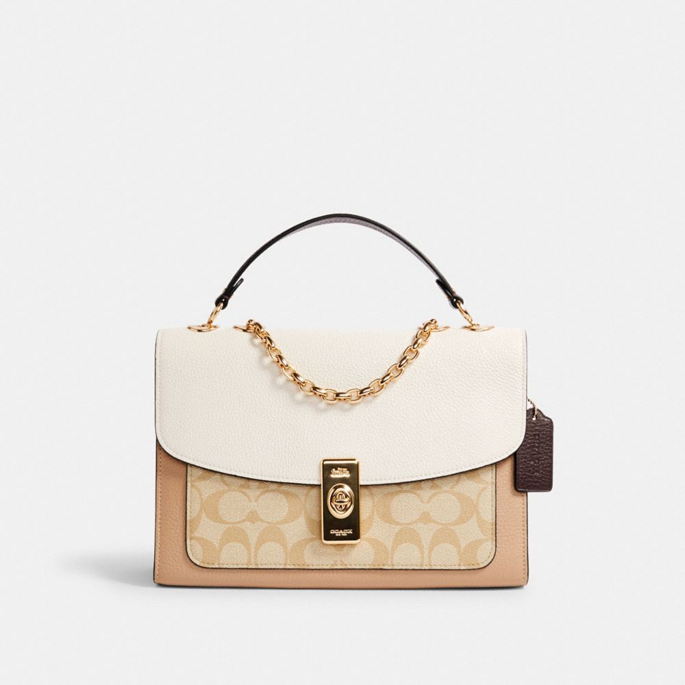 COACH FACTORY OUTLET PRICE CHART - C2174 - LANE SHOULDER BAG IN COLORBLOCK SIGNATURE CANVAS - GOLD/LIGHT KHAKI MULTI