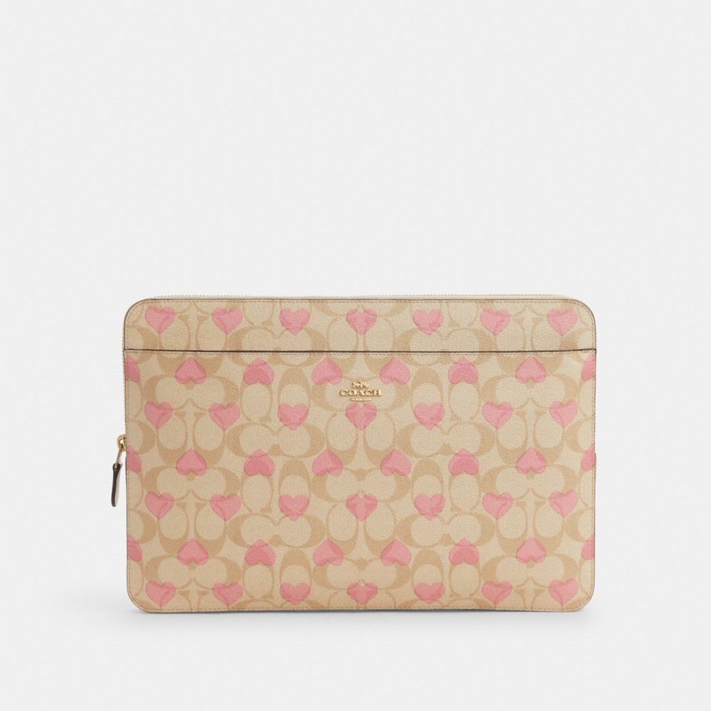 COACH FACTORY OUTLET PRICE CHART - CP374 - LAPTOP SLEEVE IN SIGNATURE CANVAS WITH HEART PRINT - GOLD/LIGHT KHAKI CHALK MULTI