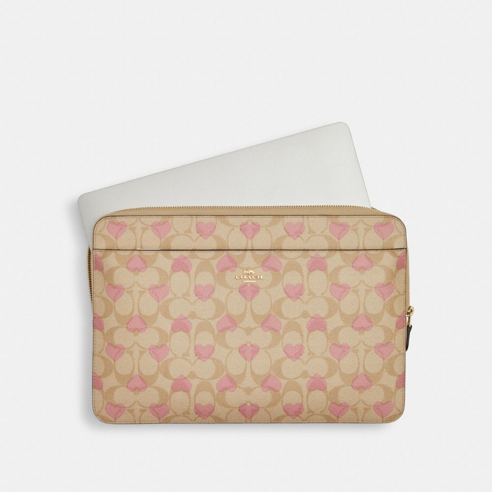 LAPTOP SLEEVE IN SIGNATURE CANVAS WITH HEART PRINT (COACH CP374)