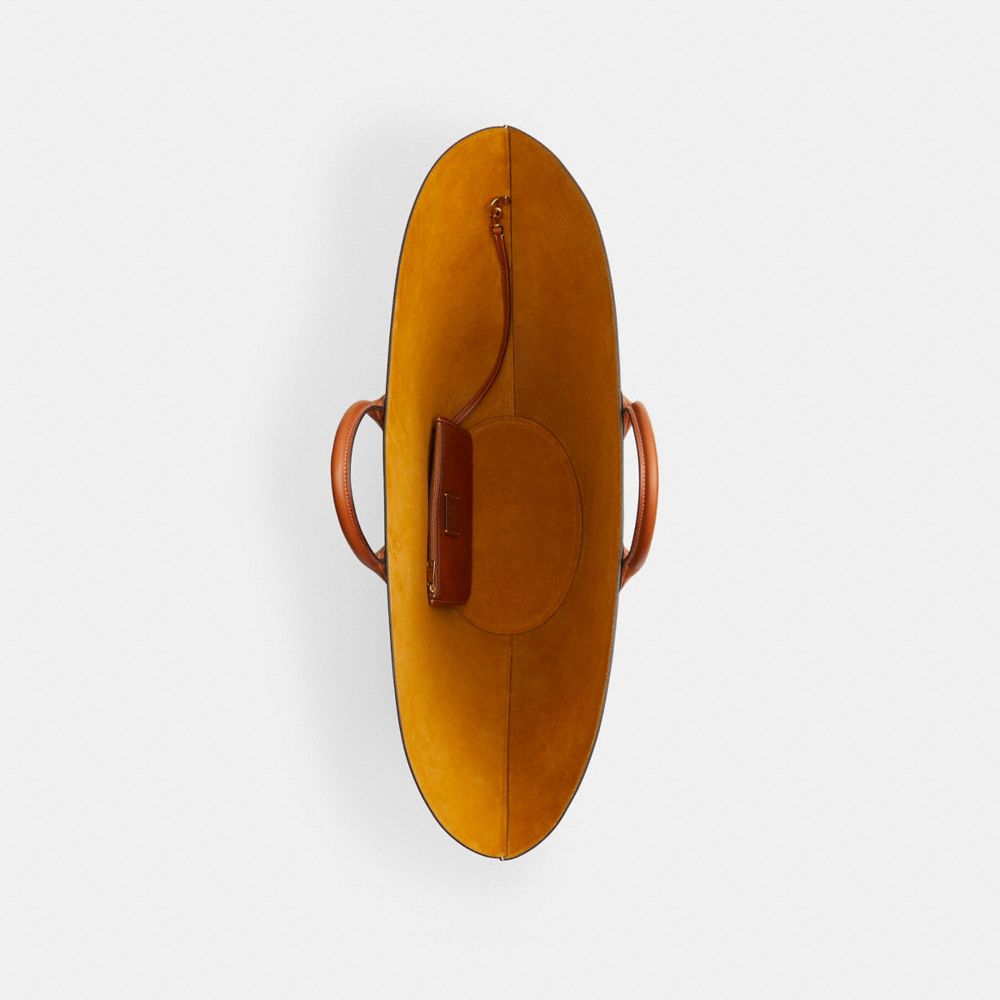 | Vegetable-tanned leather | Removable zip pouch | Suede lining | Handles with 4" drop | 12 3/4" (L) x 17 1/4" (H) x 8" (W)|Style No. CU859|