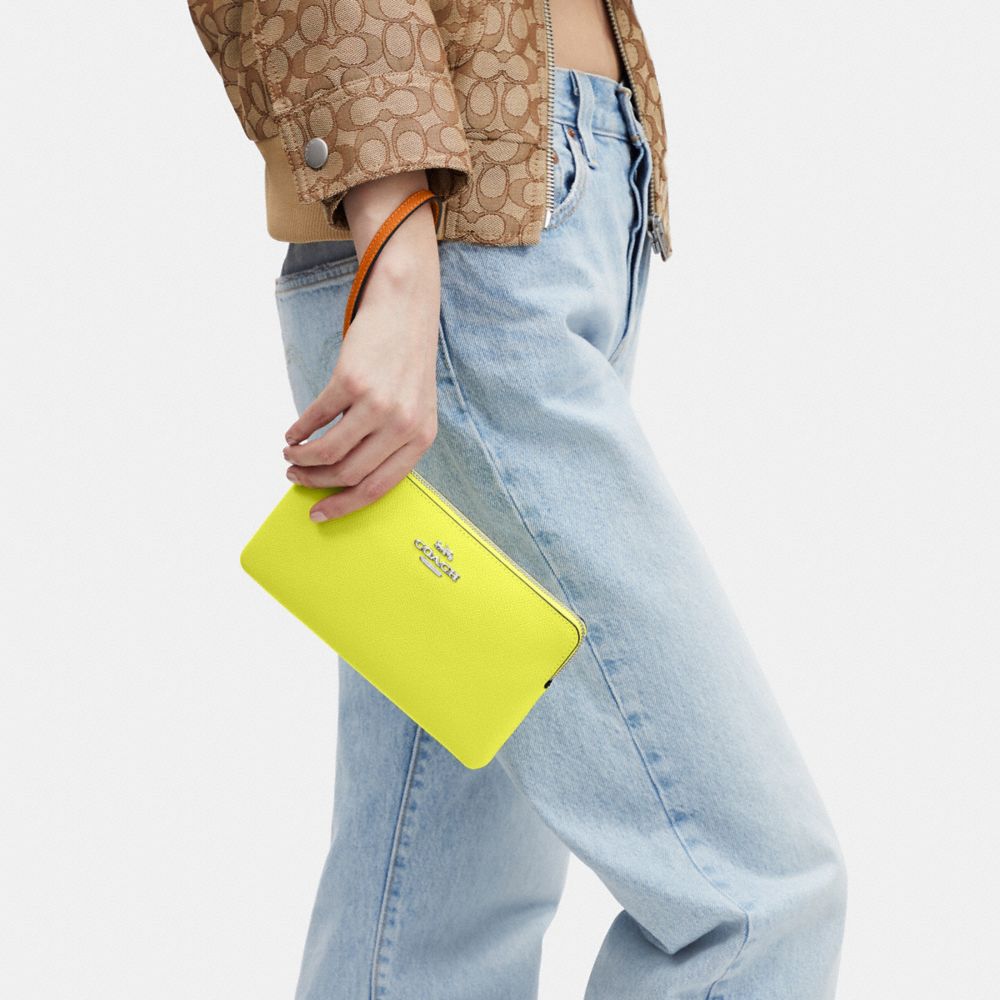 COACH FACTORY OUTLET PRICE CHART - CL682 - LARGE CORNER ZIP WRISTLET IN COLORBLOCK - SV/BRIGHT YELLOW MULTI