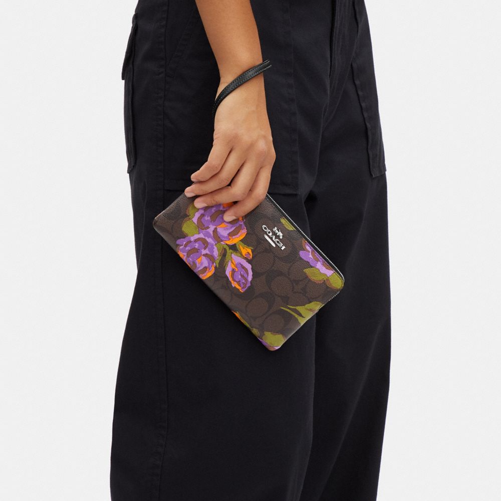 LARGE CORNER ZIP WRISTLET IN SIGNATURE CANVAS WITH ROSE PRINT (COACH CL677)