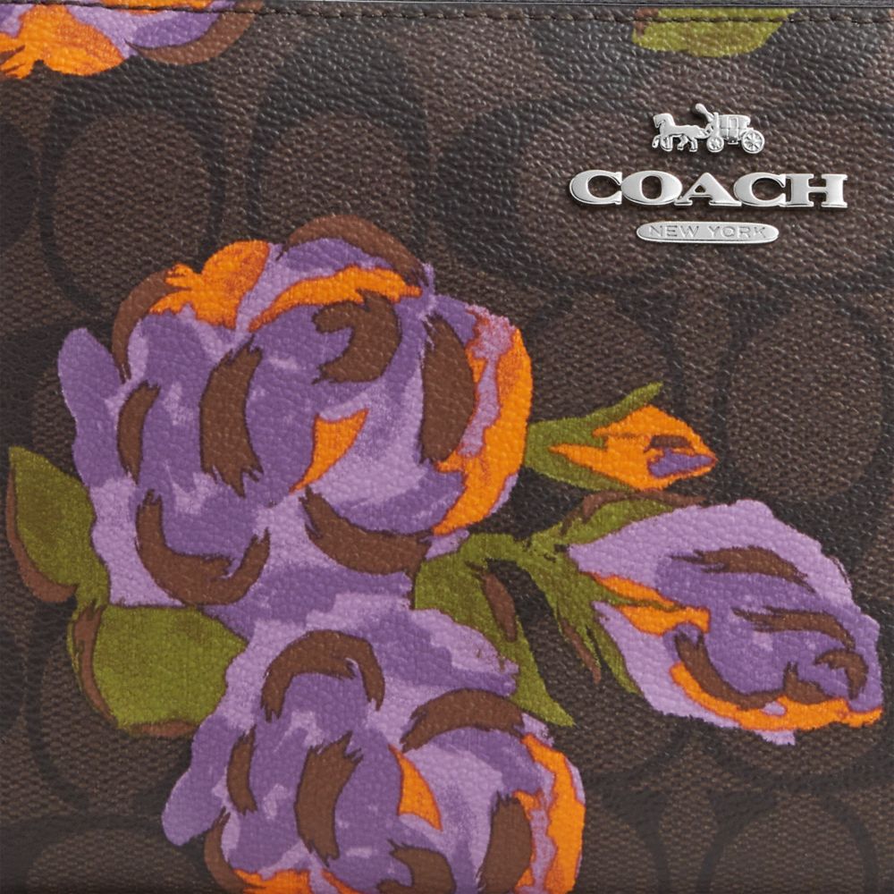 COACH FACTORY OUTLET PRICE CHART - CL677 - LARGE CORNER ZIP WRISTLET IN SIGNATURE CANVAS WITH ROSE PRINT - SV/BROWN/IRIS MULTI