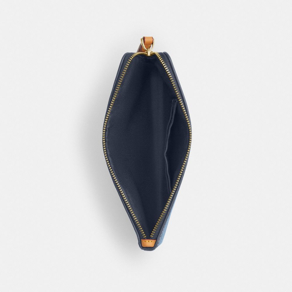 LARGE CORNER ZIP WRISTLET IN SIGNATURE DENIM (COACH CDE82)