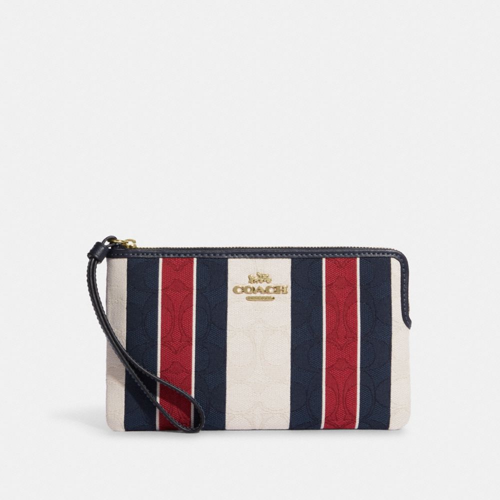 LARGE CORNER ZIP WRISTLET IN SIGNATURE JACQUARD WITH STRIPES (COACH C8753)