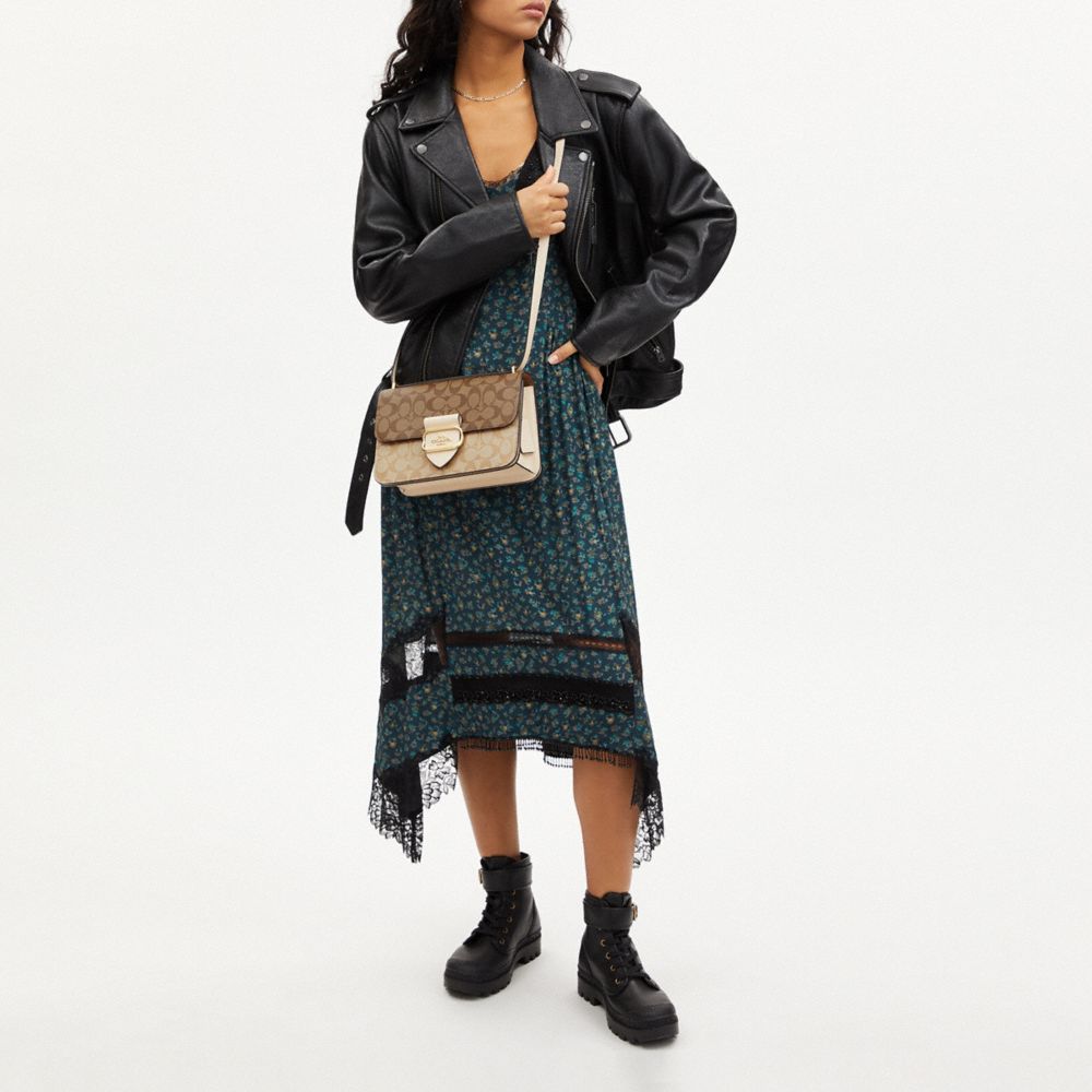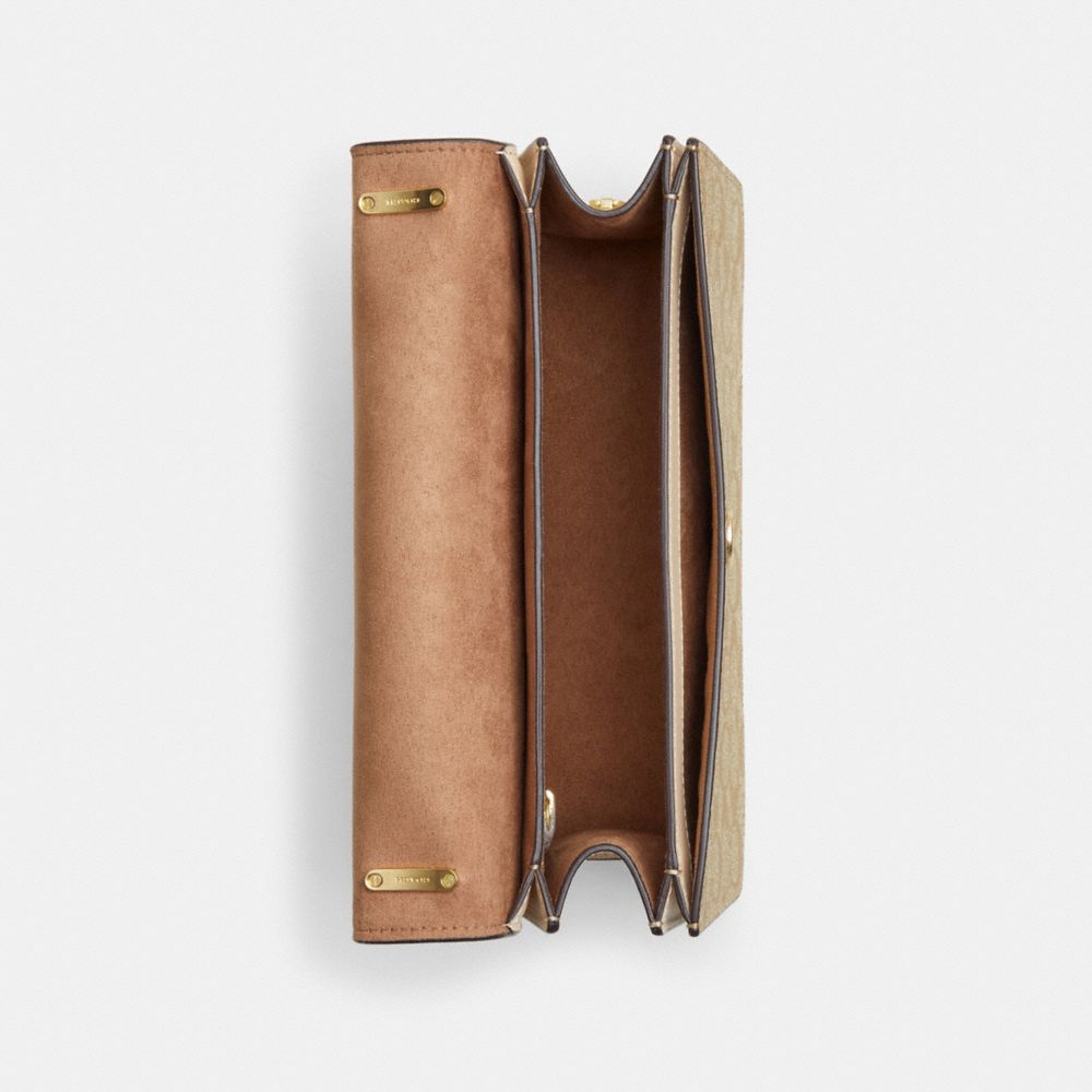 COACH FACTORY OUTLET PRICE CHART - CM089 - LARGE MORGAN SQUARE CROSSBODY IN BLOCKED SIGNATURE CANVAS - GOLD/LIGHT KHAKI MULTI