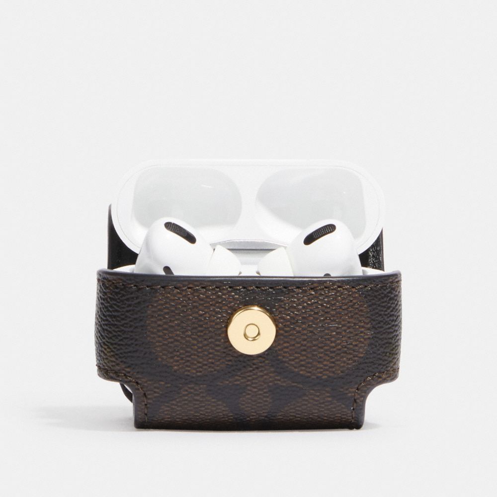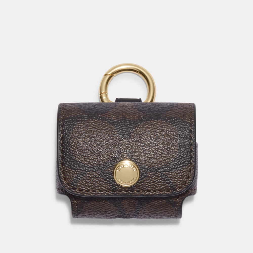 | Signature coated canvas and refined calf leather | Snap closure, leather lining | Attached hinged key ring | 2 1/2" (L) x 2" (H) x 1" (W) | Fits AirPods Pro | AirPodsĀ® is a trademark of Apple, Inc.|Style No. CF284|