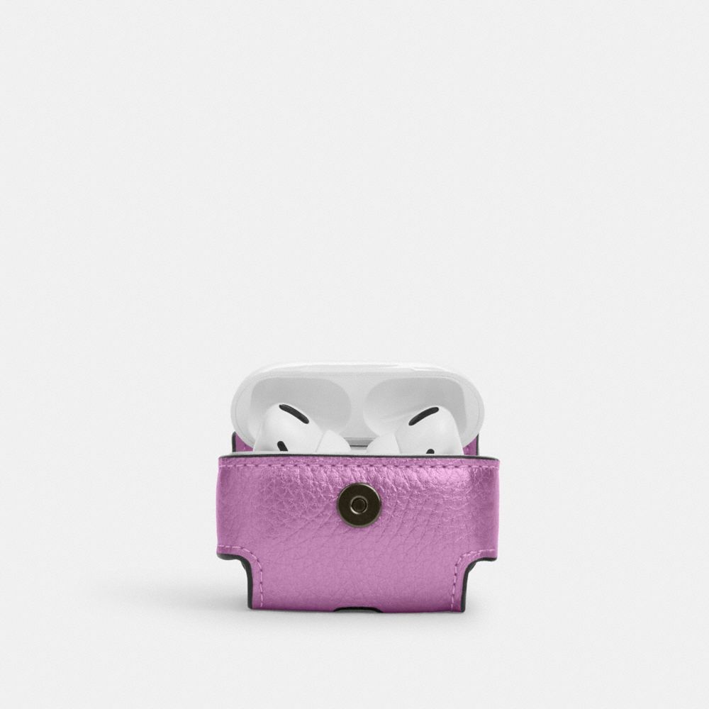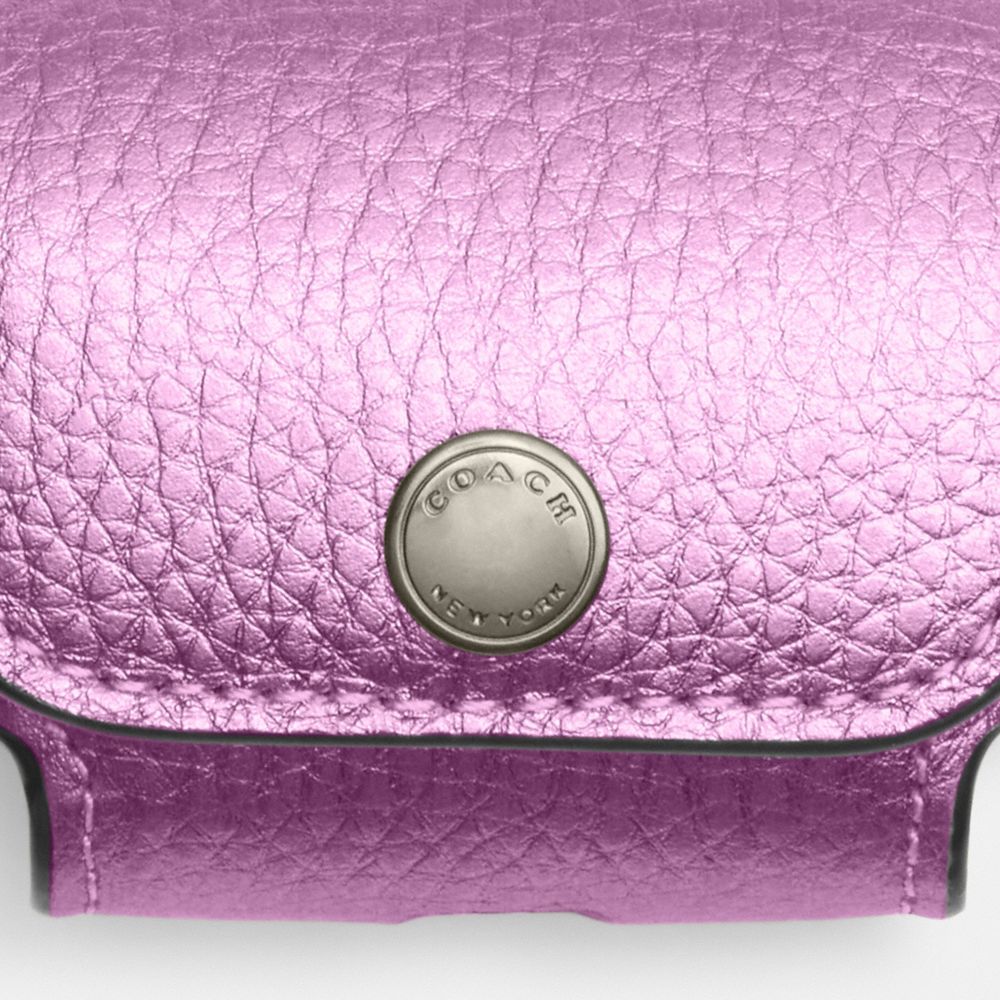 | Foil metallic refined pebble leather and metallic refined calf leather | Snap closure, leather lining | Attached hinged key ring | 2 1/2" (L) x 2" (H) x 1" (W) | Fits AirPods Pro | AirPodsĀ® is a trademark of Apple, Inc.|Style No. CP197|