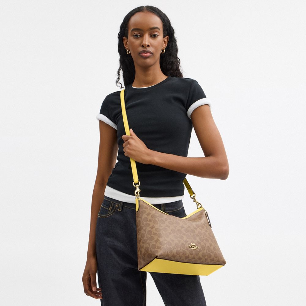 COACH FACTORY OUTLET PRICE CHART - CV975 - LAUREL SHOULDER BAG IN SIGNATURE CANVAS - IM/TAN/YELLOW