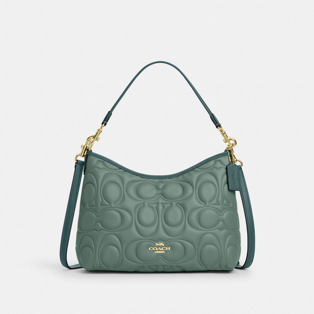 COACH FACTORY OUTLET PRICE CHART - CZ184 - LAUREL SHOULDER BAG IN BLOCKED SIGNATURE LEATHER - GOLD/SAGE/DARK TURQUOISE