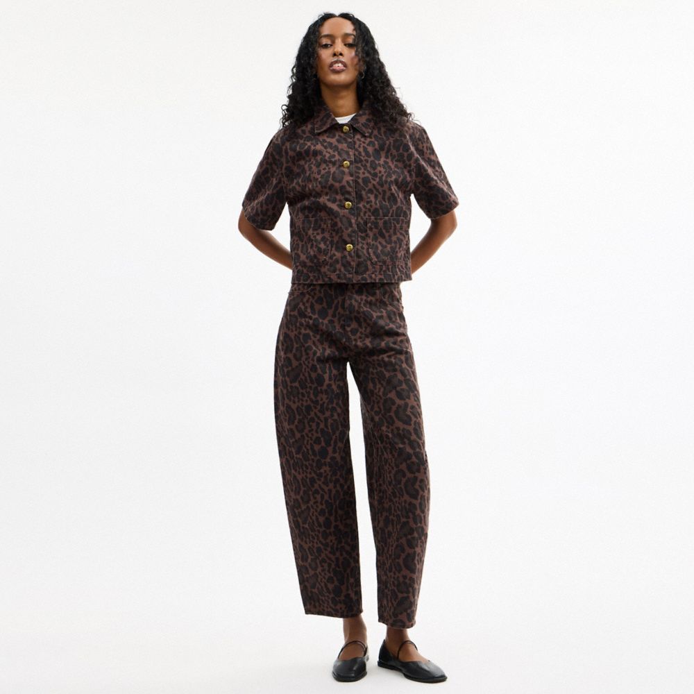 COACH FACTORY OUTLET PRICE CHART - CCP81 - LEOPARD PRINT BARREL JEANS IN ORGANIC COTTON - DARK LEOPARD