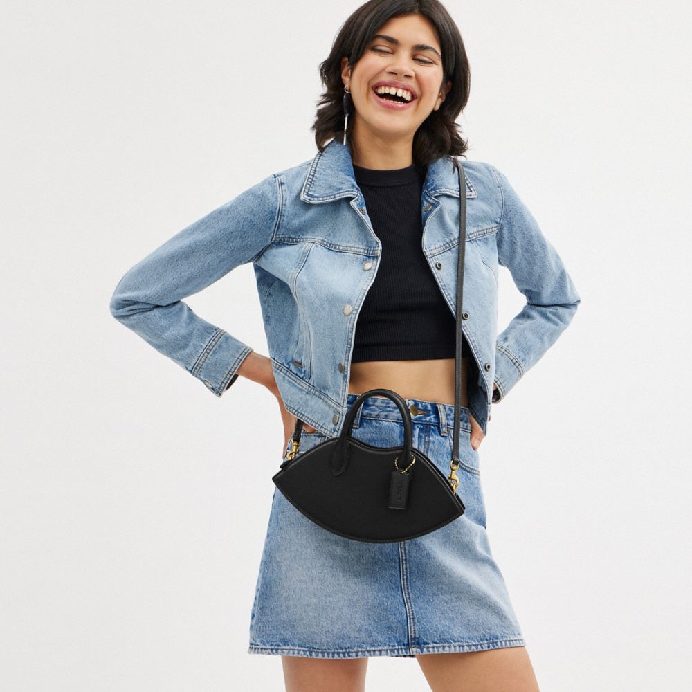 | Glovetanned leather | Zip closure, leather lining | Handles with 3 1/4" drop | Detachable strap with 21 1/2" drop for shoulder or crossbody wear | 11 1/4" (L) x 5 3/4" (H) x 2" (W)|Style No. CU856|