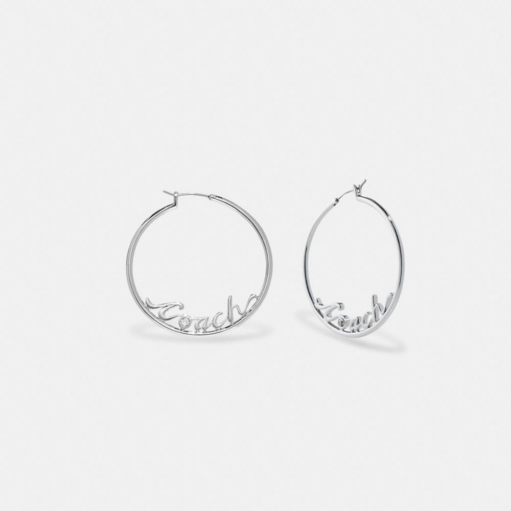 COACH FACTORY OUTLET PRICE CHART - CD790 - LOGO SCRIPT HOOP EARRINGS - SILVER/CRYSTAL