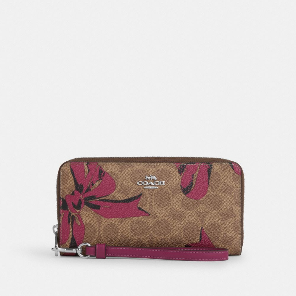COACH FACTORY OUTLET PRICE CHART - CZ326 - LONG ZIP AROUND WALLET IN SIGNATURE CANVAS WITH BOW PRINT - SILVER/TAN/PINK MULTI