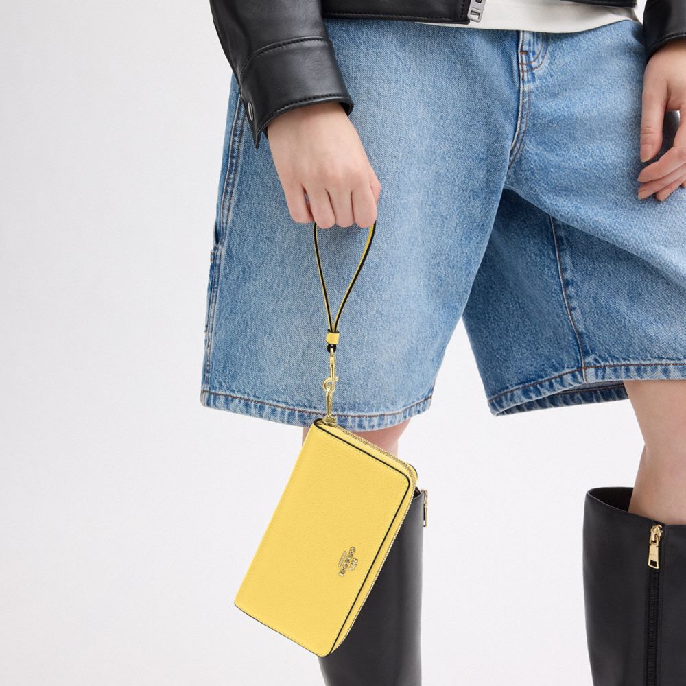 | Refined pebble leather | Twelve credit card slots | Full-length bill compartments | Inside zip coin pocket | Zip-around closure | Detachable wrist strap | 7 1/2" (L) x 4" (H) x 1" (W) | Fits all iPhone and Samsung Galaxy phones|Style No. C4451|