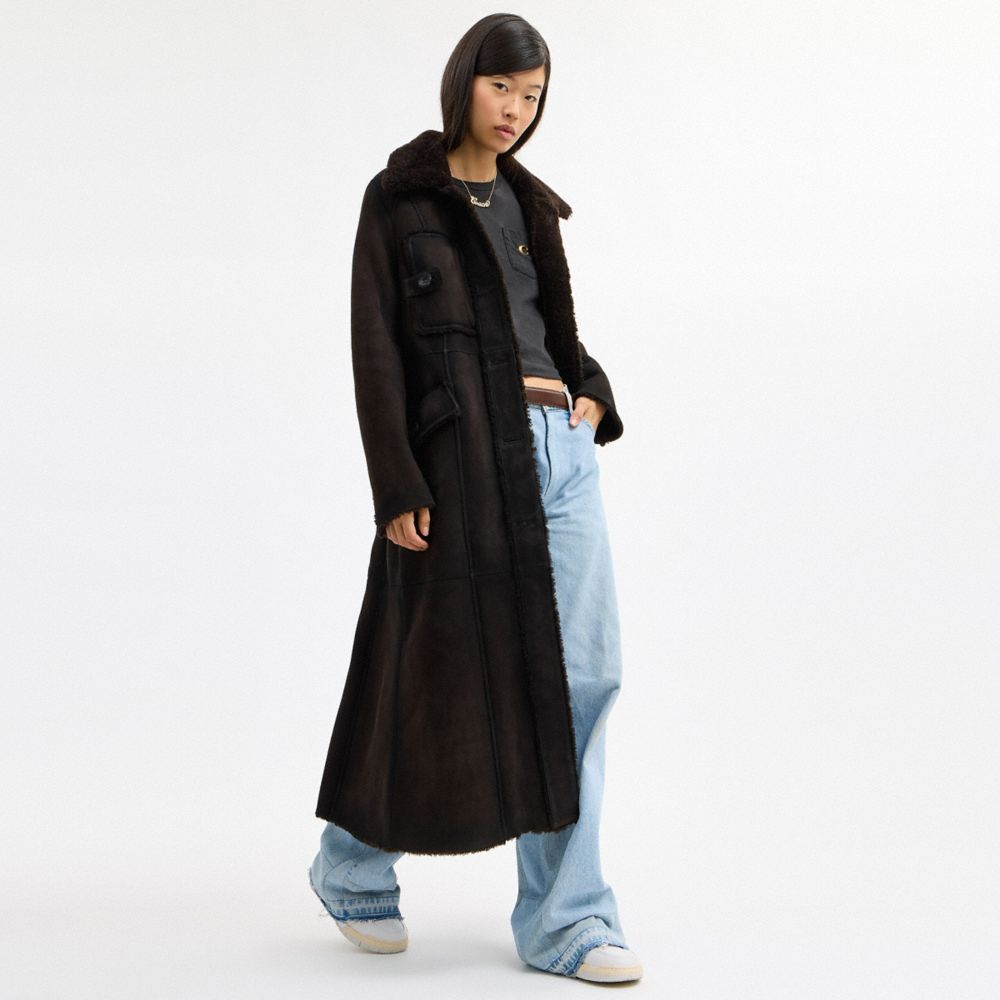 LONG SHEARLING TRENCH COAT (COACH CCI96)