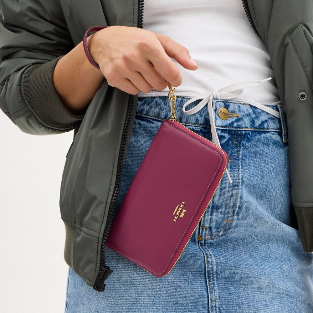 | Refined calf leather | 12 credit card slots | Full-length bill compartments | Inside zip coin pocket | Zip-around closure | Detachable wrist strap | 7 1/2" (L) x 4" (H) x 1" (W) | Fits all iPhone and Samsung Galaxy phones|Style No. CR623|