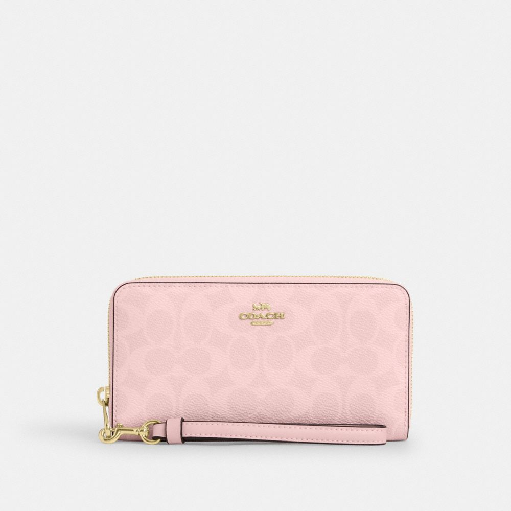 COACH FACTORY OUTLET PRICE CHART - CW778 - LONG ZIP AROUND WALLET IN SIGNATURE CANVAS - GOLD/POWDER PINK