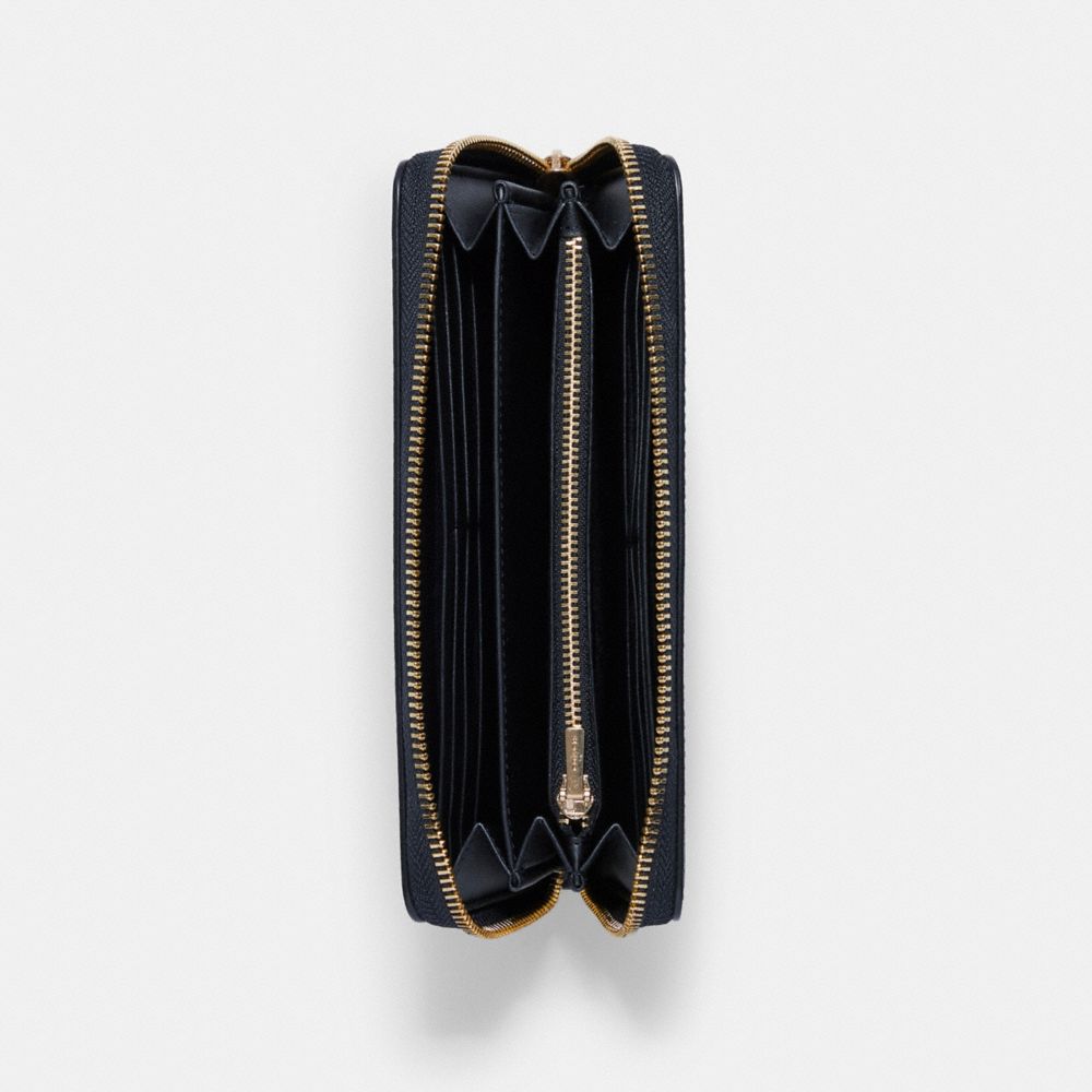 Signature coated canvas and smooth leather| Twelve credit card slots| Full-length bill compartments| Inside zip coin pocket| Zip-around closure| Detachable wrist strap| 7 1/2" (L) x 4" (H) x 1" (W)Style No. C6047