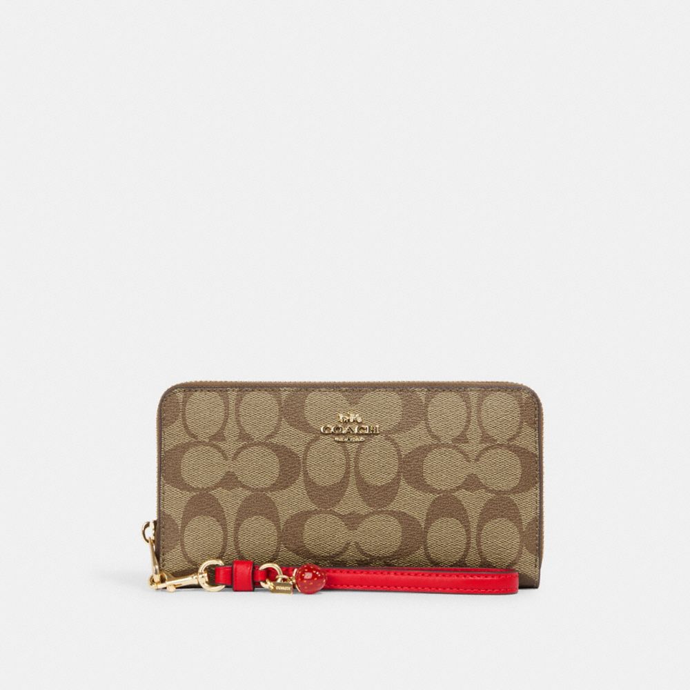 COACH FACTORY OUTLET PRICE CHART - CH595 - LONG ZIP AROUND WALLET IN SIGNATURE CANVAS WITH STRAWBERRY - IM/KHAKI/ELECTRIC RED