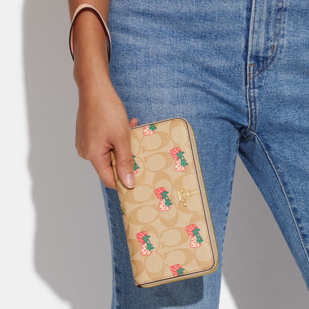 LONG ZIP AROUND WALLET IN SIGNATURE CANVAS WITH STRAWBERRY PRINT (COACH CB593)