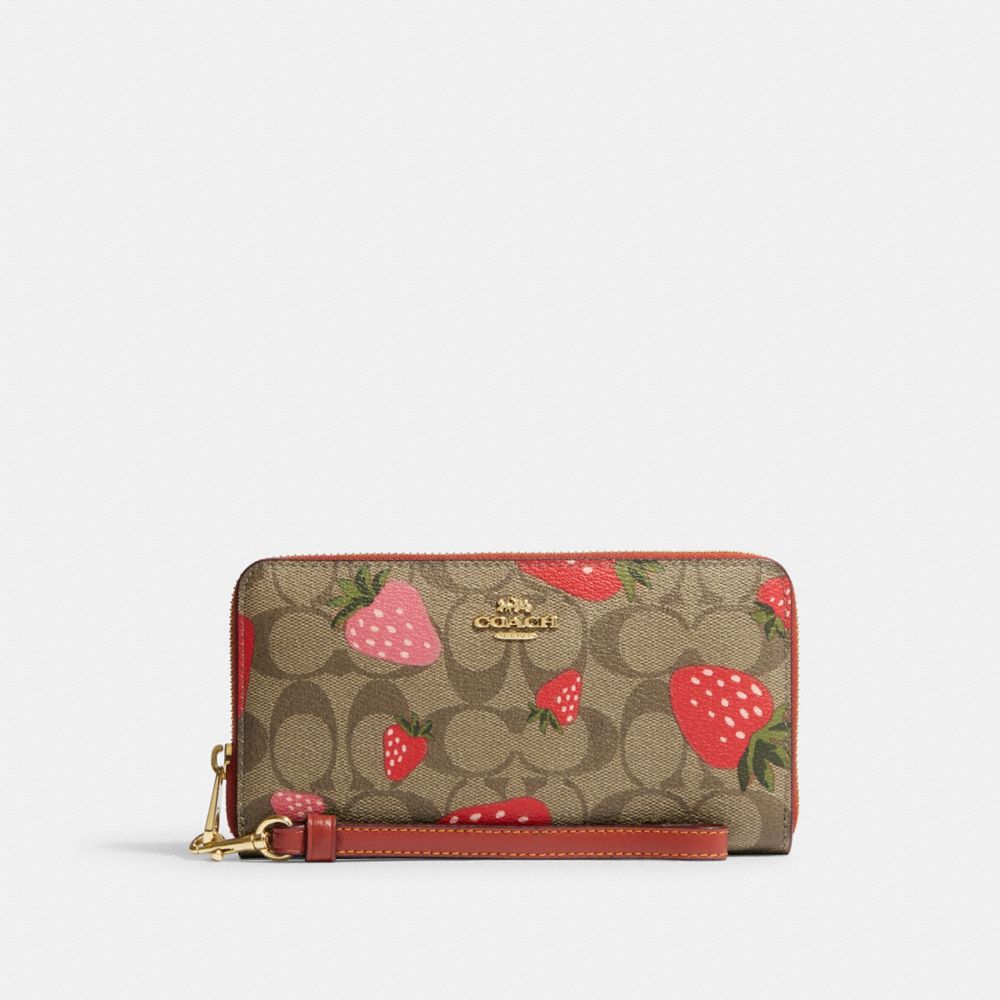 COACH FACTORY OUTLET PRICE CHART - CH523 - LONG ZIP AROUND WALLET IN SIGNATURE CANVAS WITH WILD STRAWBERRY PRINT - GOLD/KHAKI MULTI
