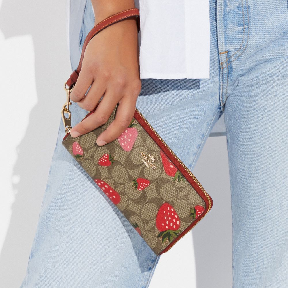 LONG ZIP AROUND WALLET IN SIGNATURE CANVAS WITH WILD STRAWBERRY PRINT (COACH CH523)