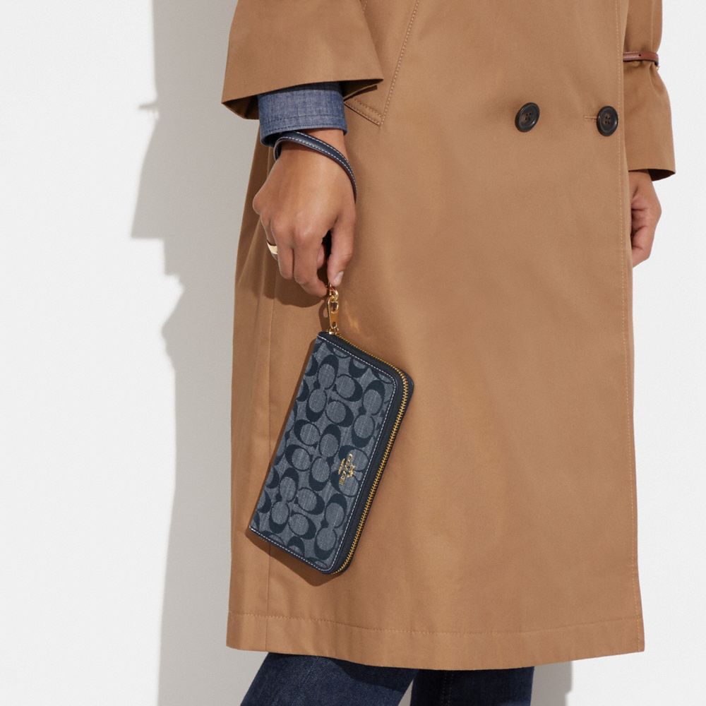 LONG ZIP AROUND WALLET IN SIGNATURE CHAMBRAY (COACH CH369)