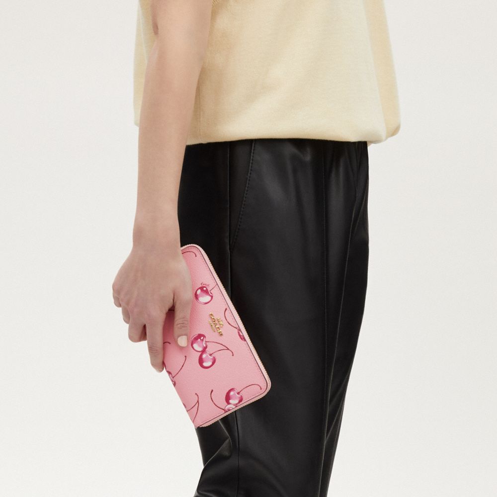 COACH FACTORY OUTLET PRICE CHART - CR642 - LONG ZIP AROUND WALLET WITH CHERRY PRINT - IM/FLOWER PINK/BRIGHT VIOLET