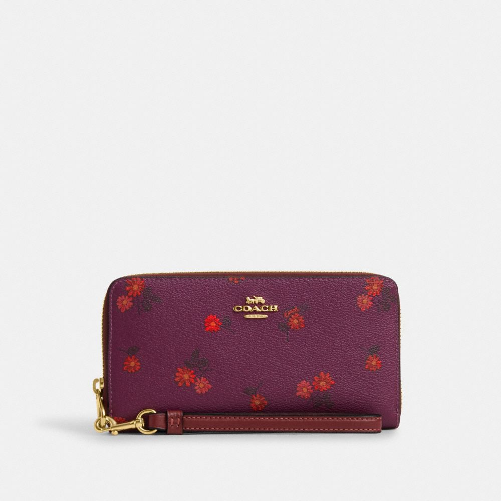COACH FACTORY OUTLET PRICE CHART - CM999 - LONG ZIP AROUND WALLET WITH COUNTRY FLORAL PRINT - GOLD/DEEP BERRY MULTI