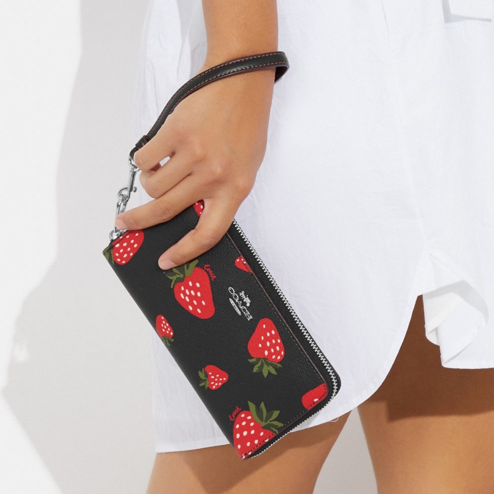 LONG ZIP AROUND WALLET WITH WILD STRAWBERRY PRINT (COACH CH531)