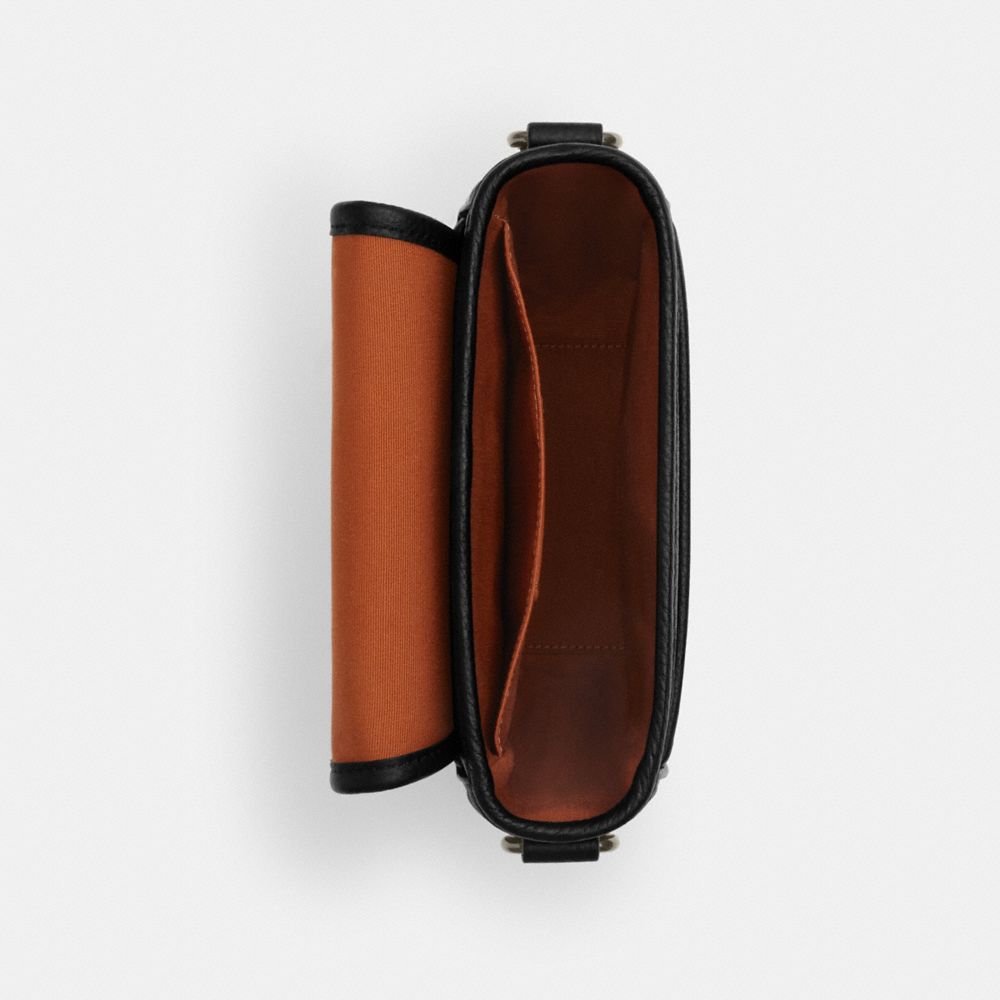 | Signature coated canvas and refined pebble leather | Inside multifunction pocket | Magnetic snap closure, fabric lining | Detachable strap with 26" drop for shoulder or crossbody wear | 6" (L) x 6 3/4" (H) x 2 1/2" (W)|Style No. CW180|