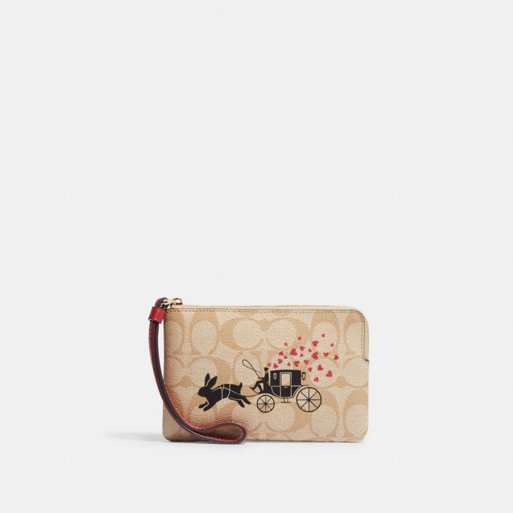LUNAR NEW YEAR CORNER ZIP WRISTLET IN SIGNATURE CANVAS WITH RABBIT AND CARRIAGE (COACH CF372)