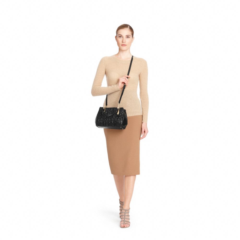 Longer strap with 44 1/2" drop for shoulder or crossbody wear